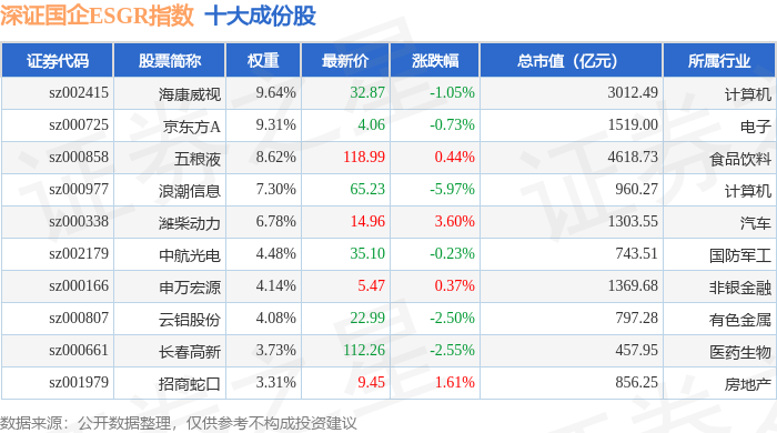 深证国企ESGR(470055)指数十大成份股详情如下: