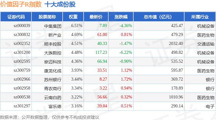 证券之星消息,10月31日,价值因子R(480056)指数报收于3141.01点,跌0.32%,成交527.22亿元,换手率1.6%。当日该指数成份股中,上涨的有32家,安科生物以6.75%的涨幅领涨,下跌的有18家,中钨高新以10.0%的跌幅领跌。