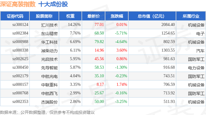 深证高装(970037)指数十大成份股详情如下: