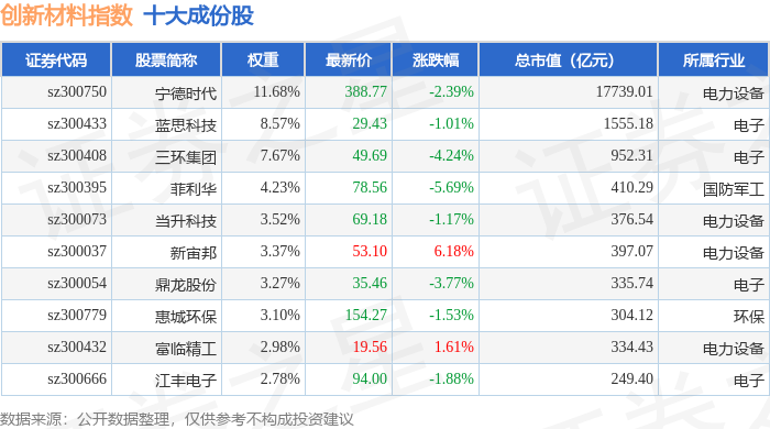 资金流向方面,创新材料(970039)指数成份股当日主力资金净流出合计29.09亿元,游资资金净流入合计1.65亿元,散户资金净流入合计27.44亿元。成份股资金流向详情见下表: