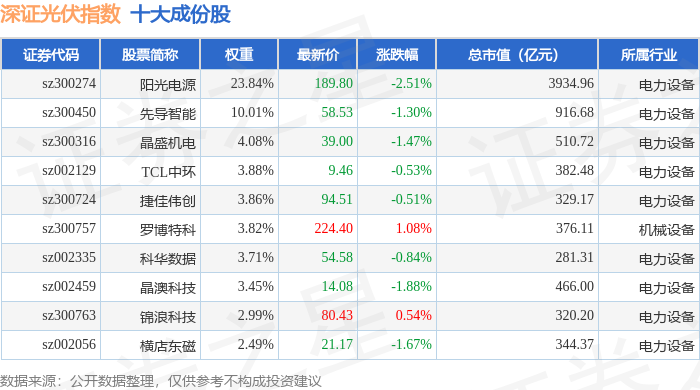资金流向方面,深证光伏(970035)指数成份股当日主力资金净流出合计22.91亿元,游资资金净流入合计4.04亿元,散户资金净流入合计18.87亿元。成份股资金流向详情见下表: