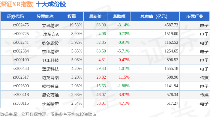 证券之星消息,10月31日,深证XR(970046)指数报收于2259.9点,跌0.76%,成交714.96亿元,换手率2.98%。当日该指数成份股中,上涨的有31家,中文在线以8.15%的涨幅领涨,下跌的有18家,鹏鼎控股以9.61%的跌幅领跌。