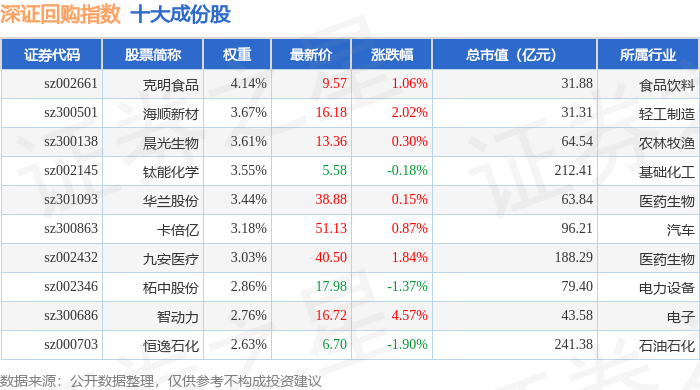 证券之星消息,10月31日,深证回购(970063)指数报收于2781.02点,涨1.14%,成交228.92亿元,换手率1.7%。当日该指数成份股中,上涨的有37家,华源控股以9.97%的涨幅领涨,下跌的有10家,凯莱英以4.33%的跌幅领跌。