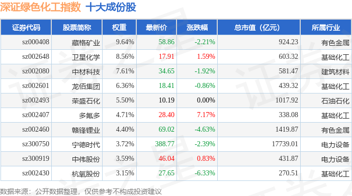 证券之星消息,10月31日,深证绿色化工(970076)指数报收于1631.67点,跌0.25%,成交600.87亿元,换手率2.67%。当日该指数成份股中,上涨的有32家,星源材质以9.2%的涨幅领涨,下跌的有16家,铜冠铜箔以8.81%的跌幅领跌。