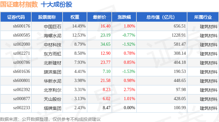 资金流向方面,国证建材(980048)指数成份股当日主力资金净流入合计6138.16万元,游资资金净流出合计2740.21万元,散户资金净流出合计3397.95万元。成份股资金流向详情见下表: