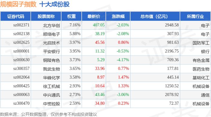 资金流向方面,规模因子(980055)指数成份股当日主力资金净流出合计25.57亿元,游资资金净流入合计10.36亿元,散户资金净流入合计15.21亿元。成份股资金流向详情见下表: