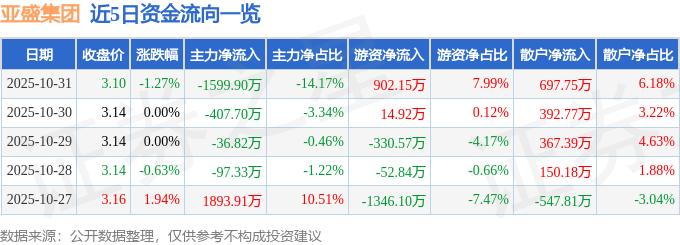 10月31日的资金流向数据方面,主力资金净流出1599.9万元,占总成交额14.17%,游资资金净流入902.15万元,占总成交额7.99%,散户资金净流入697.75万元,占总成交额6.18%。