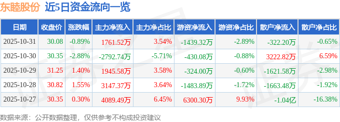 证券之星消息,截至2025年10月31日收盘,东睦股份(600114)报收于30.08元,下跌0.89%,换手率2.65%,成交量16.35万手,成交额4.98亿元。