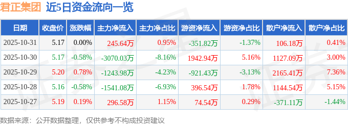 10月31日的资金流向数据方面,主力资金净流入245.64万元,占总成交额0.95%,游资资金净流出351.82万元,占总成交额1.37%,散户资金净流入106.18万元,占总成交额0.41%。
