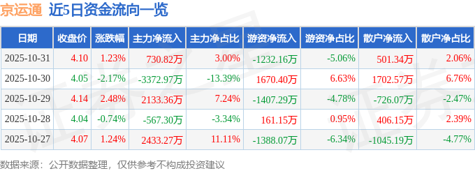 10月31日的资金流向数据方面,主力资金净流入730.82万元,占总成交额3.0%,游资资金净流出1232.16万元,占总成交额5.06%,散户资金净流入501.34万元,占总成交额2.06%。