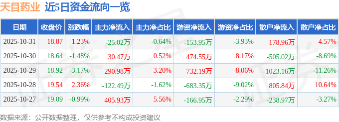 证券之星消息,截至2025年10月31日收盘,天目药业(600671)报收于18.87元,上涨1.23%,换手率1.71%,成交量2.08万手,成交额3917.48万元。
