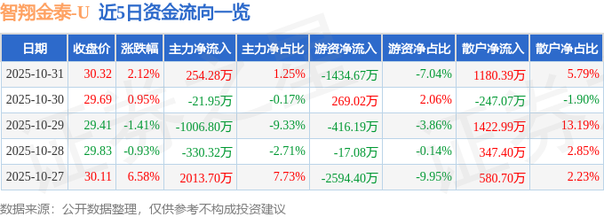 证券之星消息,截至2025年10月31日收盘,智翔金泰(688443)报收于30.32元,上涨2.12%,换手率5.8%,成交量6.77万手,成交额2.04亿元。