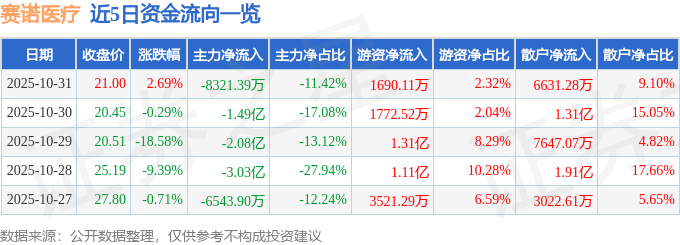 证券之星消息,截至2025年10月31日收盘,赛诺医疗(688108)报收于21.0元,上涨2.69%,换手率8.37%,成交量34.82万手,成交额7.29亿元。