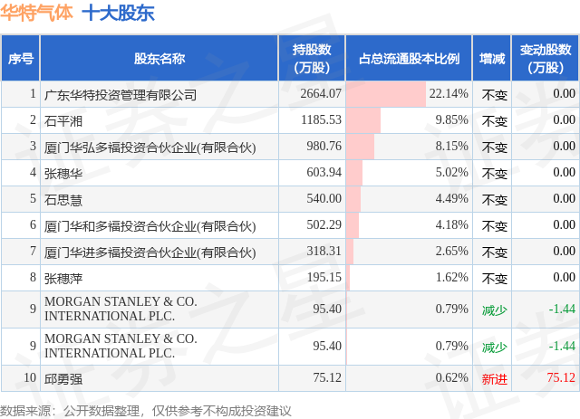 根据华特气体2025年三季报公布的十大股东详情如下: