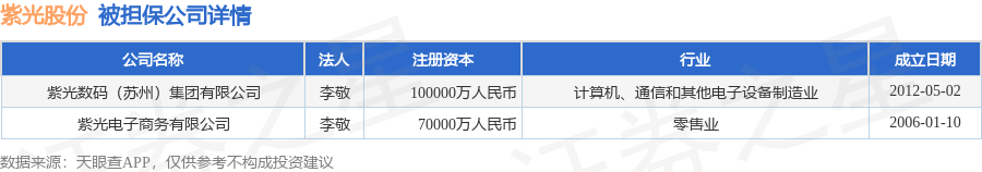 紫光股份10月30日披露总额2.5亿元的对外担保,被担保公司2家。本次担保的担保方式为连带责任担保。