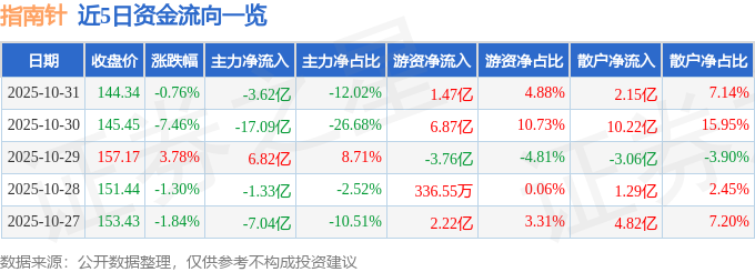 证券之星消息,截至2025年10月31日收盘,指南针(300803)报收于144.34元,下跌0.76%,换手率3.43%,成交量20.56万手,成交额30.1亿元。
