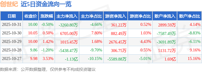 证券之星消息,截至2025年10月31日收盘,创世纪(300083)报收于10.0元,下跌0.5%,换手率4.66%,成交量69.52万手,成交额7.0亿元。