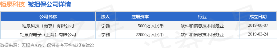 钜泉科技10月30日披露2笔对外担保,被担保公司2家。对外担保明细如下表: