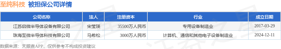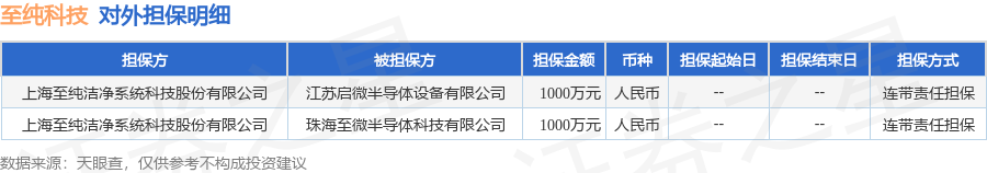 至纯科技10月30日披露2笔对外担保,被担保公司2家。对外担保明细如下表: