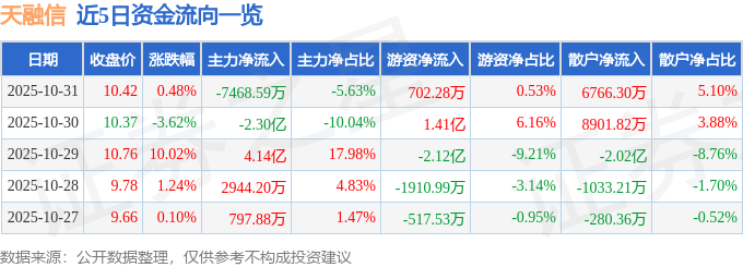 证券之星消息,截至2025年10月31日收盘,天融信(002212)报收于10.42元,上涨0.48%,换手率10.87%,成交量126.85万手,成交额13.26亿元。