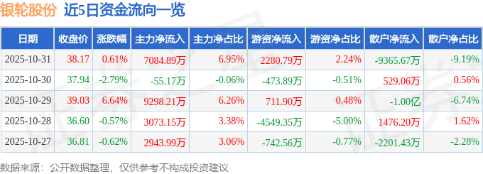 证券之星消息,截至2025年10月31日收盘,银轮股份(002126)报收于38.17元,上涨0.61%,换手率3.32%,成交量26.28万手,成交额10.19亿元。