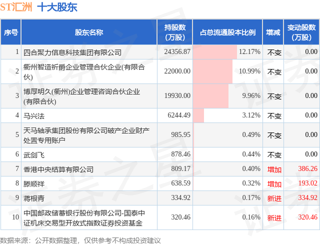 根据ST汇洲2025年三季报公布的十大股东详情如下: