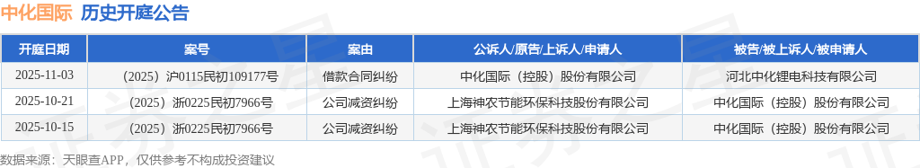 根据统计,近一年内以中化国际(控股)股份有限公司为当事人的历史开庭公告有3则,其中案由为“公司减资纠纷”的公告以2则居首,其次为“借款合同纠纷”有1则。历史开庭公告如下: