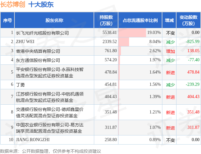根据长芯博创2025年三季报公布的十大股东详情如下: