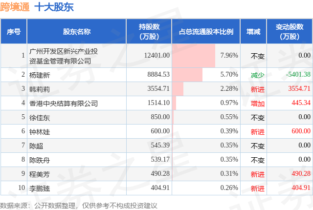 根据跨境通2025年三季报公布的十大股东详情如下:
