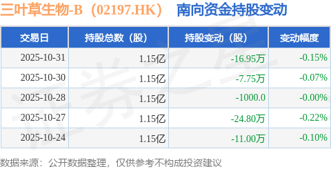 证券之星消息,10月31日南向资金减持16.95万股三叶草生物-B(02197.HK)。近5个交易日中,获南向资金减持的有5天,累计净减持60.6万股。近20个交易日中,获南向资金减持的有20天,累计净减持2035.25万股。截至目前,南向资金持有三叶草生物-B(02197.HK)1.15亿股,占公司已发行普通股的8.83%。