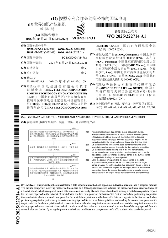 证券之星消息,根据企查查数据显示中国电信(601728)公布了一项国际专利申请,专利名为“数据采集方法、装置、设备、介质和程序产品”,专利申请号为PCT/CN2024/114762,国际公布日为2025年10月30日。