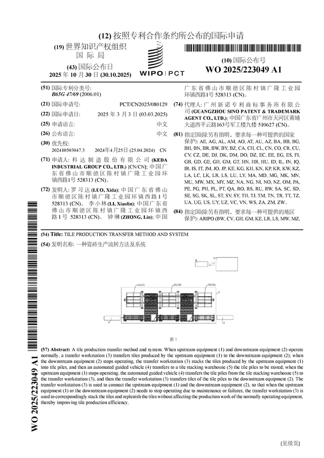 证券之星消息,根据企查查数据显示科达制造(600499)公布了一项国际专利申请,专利名为“一种瓷砖生产流转方法及系统”,专利申请号为PCT/CN2025/080129,国际公布日为2025年10月30日。
