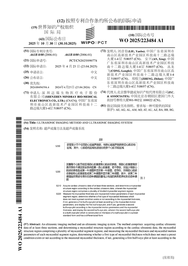 证券之星消息,根据企查查数据显示迈瑞医疗(300760)公布了一项国际专利申请,专利名为“超声成像方法及超声成像系统”,专利申请号为PCT/CN2025/090774,国际公布日为2025年10月30日。