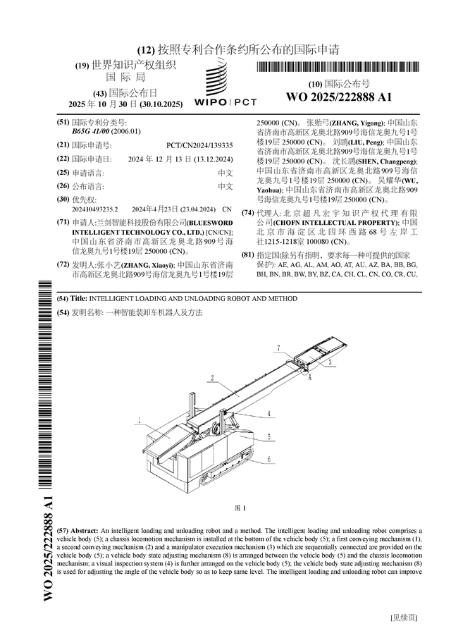 证券之星消息,根据企查查数据显示兰剑智能(688557)公布了一项国际专利申请,专利名为“一种智能装卸车机器人及方法”,专利申请号为PCT/CN2024/139335,国际公布日为2025年10月30日。