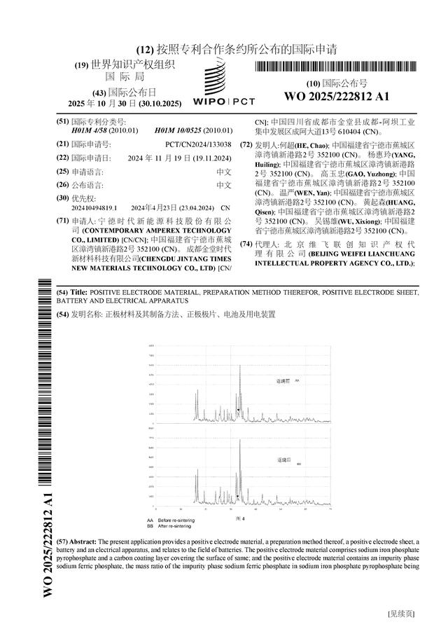 证券之星消息,根据企查查数据显示宁德时代(300750)公布了一项国际专利申请,专利名为“正极材料及其制备方法、正极极片、电池及用电装置”,专利申请号为PCT/CN2024/133038,国际公布日为2025年10月30日。