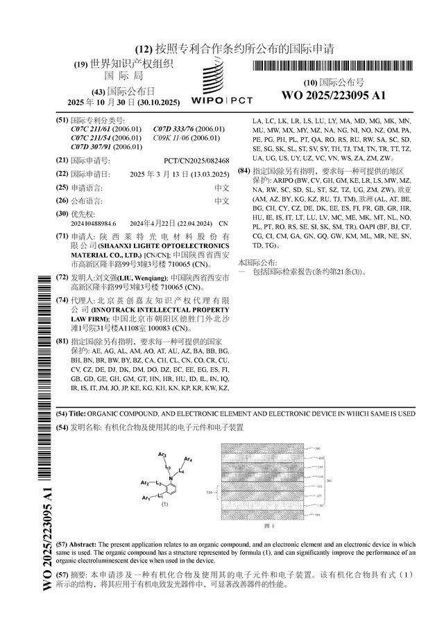 证券之星消息,根据企查查数据显示莱特光电(688150)公布了一项国际专利申请,专利名为“有机化合物及使用其的电子元件和电子装置”,专利申请号为PCT/CN2025/082468,国际公布日为2025年10月30日。