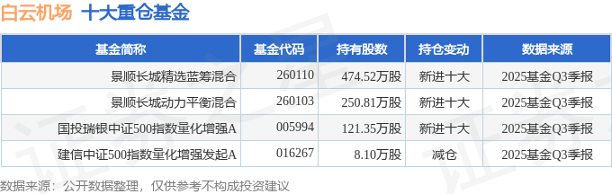 持有白云机场最多的基金为景顺长城精选蓝筹混合,目前规模为15.16亿元,最新净值1.012(10月31日),较上一交易日上涨0.5%,近一年上涨8.12%。该基金现任基金经理为刘苏 张欢。