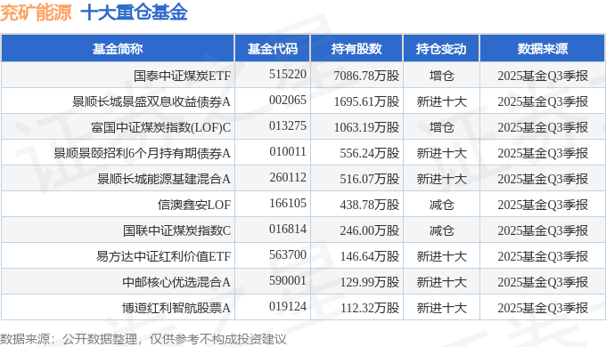 持有兖矿能源最多的基金为国泰中证煤炭ETF,目前规模为114.13亿元,最新净值1.1814(10月31日),较上一交易日下跌0.89%,近一年上涨3.78%。该基金现任基金经理为吴中昊。