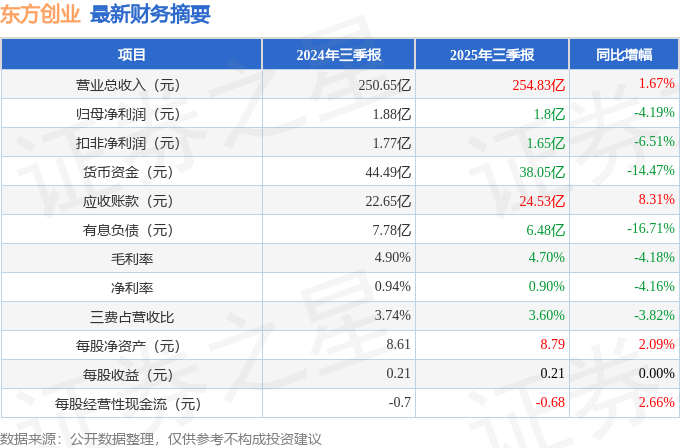 据证券之星公开数据整理,近期东方创业(600278)发布2025年三季报。截至本报告期末,公司营业总收入254.83亿元,同比上升1.67%,归母净利润1.8亿元,同比下降4.19%。按单季度数据看,第三季度营业总收入100.04亿元,同比上升14.17%,第三季度归母净利润6360.5万元,同比上升9.94%。本报告期东方创业公司应收账款体量较大,当期应收账款占最新年报归母净利润比达1134.53%。