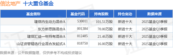 持有信达地产最多的基金为建信内生动力混合A,目前规模为1.41亿元,最新净值1.324(10月31日),较上一交易日下跌1.49%,近一年下跌0.13%。该基金现任基金经理为杨荔媛。