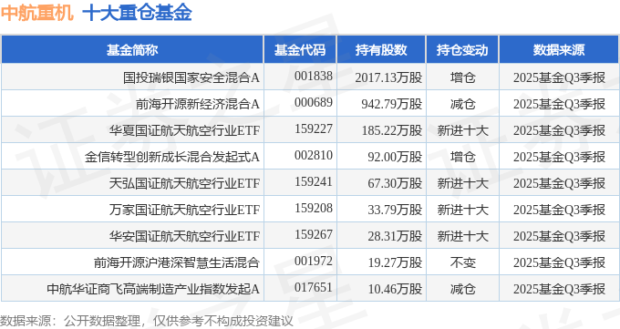持有中航重机最多的基金为国投瑞银国家安全混合A,目前规模为28.57亿元,最新净值1.1899(10月30日),较上一交易日下跌2.38%,近一年上涨10.18%。该基金现任基金经理为李轩。