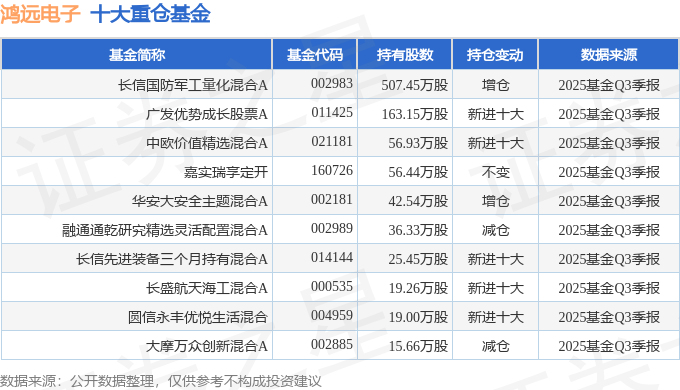 持有鸿远电子最多的基金为长信国防军工量化混合A,目前规模为9.05亿元,最新净值1.6558(10月30日),较上一交易日下跌2.39%,近一年上涨32.72%。该基金现任基金经理为宋海岸。