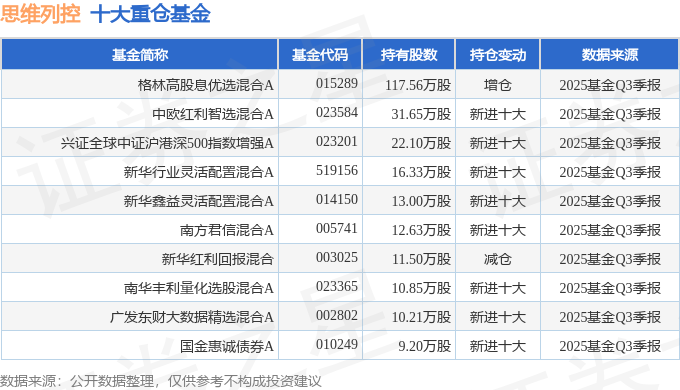 持有思维列控最多的基金为格林高股息优选混合A,目前规模为1.36亿元,最新净值1.7531(10月31日),较上一交易日下跌0.44%,近一年上涨72.41%。该基金现任基金经理为刘赞。