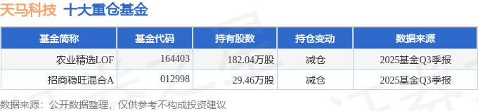 持有天马科技最多的基金为农业精选LOF,目前规模为2.39亿元,最新净值1.1359(10月31日),较上一交易日上涨1.08%,近一年上涨4.26%。该基金现任基金经理为吴国清 刘宏。