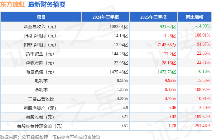 据证券之星公开数据整理,近期东方盛虹(000301)发布2025年三季报。截至本报告期末,公司营业总收入921.62亿元,同比下降14.9%,归母净利润1.26亿元,同比上升108.91%。按单季度数据看,第三季度营业总收入312.45亿元,同比下降11.91%,第三季度归母净利润-2.6亿元,同比上升85.05%。本报告期东方盛虹短期债务压力上升,流动比率达0.45。