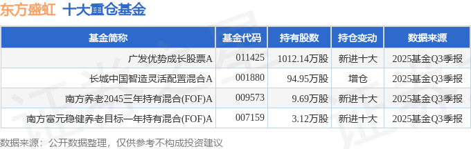 持有东方盛虹最多的基金为广发优势成长股票A,目前规模为18.38亿元,最新净值0.519(10月31日),较上一交易日下跌0.88%,近一年上涨33.97%。该基金现任基金经理为苏文杰。