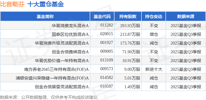持有比音勒芬最多的基金为华夏消费龙头混合A,目前规模为9.22亿元,最新净值0.5946(10月31日),较上一交易日上涨1.11%,近一年上涨2.5%。该基金现任基金经理为黄文倩。