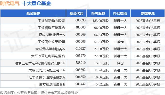 持有时代电气最多的基金为工银创新动力股票,目前规模为23.85亿元,最新净值1.27(10月31日),较上一交易日下跌0.7%,近一年上涨10.35%。该基金现任基金经理为杨鑫鑫。