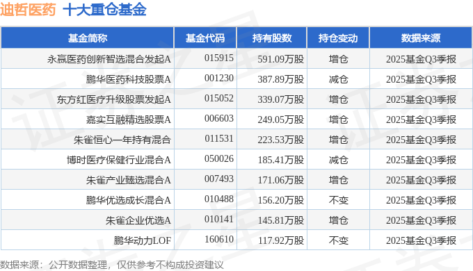 持有迪哲医药最多的基金为永赢医药创新智选混合发起A,目前规模为11.87亿元,最新净值1.7867(10月31日),较上一交易日上涨4.89%,近一年上涨130.23%。该基金现任基金经理为单林。