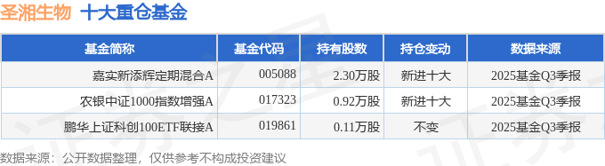持有圣湘生物最多的基金为嘉实新添辉定期混合A,目前规模为0.45亿元,最新净值0.9517(10月30日),较上一交易日下跌1.09%,近一年上涨8.05%。该基金现任基金经理为张丹华。